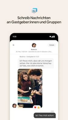 Airbnb fungiert als dein persönlicher Reiseassistent, der dich auf jeder Etappe begleitet. Nach einer Buchung erhältst du maßgeschneiderte Empfehlungen für Services und Erlebnisse, perfekt abgestimmt auf deinen Reiseort und deine Begleitung. Dein aktualisiertes Profil zeigt dir übersichtlich alle bereisten Orte und die über Airbnb geknüpften Kontakte. Alle Reiseinformationen sind zentral gebündelt: Teile Buchungsdetails, greife auf Check-in-Anweisungen und WLAN-Codes zu – selbst offline. Die integrierte Nachrichtenfunktion erleichtert die Kommunikation mit Gastgebern für Fragen oder individuelle Anpassungen. Für alle, die ihre Leidenschaft teilen möchten: Airbnb macht das Gastgeben einfach. Ob Unterkunft, Erlebnis oder Service – erreiche Millionen von Reisenden und erweitere dein Geschäft mit Airbnb. Der unkomplizierte Weg zum Gastgeber eröffnet dir die Möglichkeit, die Welt bei dir willkommen zu heißen.