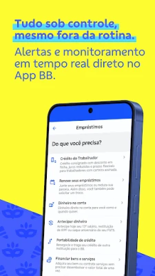 Das App BB bietet Ihnen leistungsstarke Tools für eine durchdachte Finanzplanung. Behalten Sie den Überblick über Ausgaben und Einnahmen in Echtzeit, setzen Sie sich Sparziele mit dem praktischen Cofrinho BB und organisieren Sie Ihre monatlichen Verpflichtungen mühelos. Entdecken Sie flexible Kredit- und Darlehensoptionen; simulieren, beantragen und verfolgen Sie persönliche Darlehen, Gehaltsvorschüsse oder Finanzierungen direkt in der App. Zudem erhalten Sie volle Kontrolle über Ihre BB-Kreditkarten – passen Sie Limits an, nutzen Sie virtuelle Karten für sichere Online-Einkäufe und verfolgen Sie Ihre Ausgaben transparent.