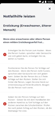 Das Erforschen und Verfestigen von Erste-Hilfe-Fähigkeiten wird mit der Erste-Hilfe-App zu einer intuitiven Erfahrung. Durch interaktive Übungsspiele und verständliche Schritt-für-Schritt-Anleitungen für alltägliche Notfallszenarien meistern Sie wichtige Fertigkeiten. Diese spielerische Herangehensweise ermöglicht es Ihnen, Ihre Lernfortschritte sichtbar zu machen, Ihr Fachwissen kontinuierlich zu erweitern und Ihr Vertrauen in Ihre eigenen Fähigkeiten zur Hilfeleistung zu festigen. Darüber hinaus integriert die Anwendung umfangreiche Sicherheitshinweise, etwa zum Verhalten im Wasser oder im Straßenverkehr, um Sie proaktiv auf potenzielle Gefahren vorzubereiten. Das Beste daran: Alle Inhalte sind vorab auf Ihrem Gerät gespeichert, sodass Sie jederzeit und überall, auch ohne Mobilfunk- oder WLAN-Verbindung, auf alle Informationen zugreifen können.