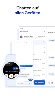 Ihre Unterhaltungen begleiten Sie, wohin Sie auch gehen. Beginnen Sie einen Chat bequem auf Ihrem Smartphone und setzen Sie ihn nahtlos auf Ihrem Tablet, Computer oder sogar Ihrer Smartwatch mit Wear OS fort. Google Messages bietet Ihnen ein kohärentes und vernetztes Kommunikationserlebnis über all Ihre Geräte hinweg. Entdecken Sie eine Welt voller erweiterter Funktionen, verstärkter Sicherheit und unbegrenzter Möglichkeiten, Ihre Gedanken und Gefühle auszudrücken. Beachten Sie, dass die Verfügbarkeit bestimmter Funktionen und von RCS regional, an den Mobilfunkanbieter sowie gegebenenfalls an einen Datentarif oder eine Beta-Registrierung gebunden sein kann.