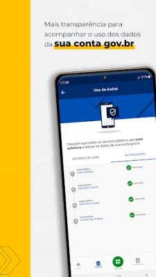 Tauchen Sie ein in die zukunftsweisende Welt der digitalen Verwaltung mit der komplett überarbeiteten gov.br App. Erleben Sie einen unvergleichlich vereinfachten Zugang zu staatlichen Dienstleistungen, der Ihnen Zeit und Mühe spart. Der Einstieg in die Anwendung ist nun mühelos – keine komplizierten Hürden mehr. Sollten Sie noch kein gov.br-Konto besitzen, können Sie dieses direkt in der App anlegen. Und das Beste: Um sich bei jeder Regierungsseite anzumelden, die mit dem „Entrar com gov.br"-Button ausgestattet ist, benötigen Sie kein Passwort mehr. Ihre biometrischen Daten des Smartphones genügen, um Ihnen einen schnellen und hochsicheren Zugriff zu ermöglichen, selbst wenn Ihnen Ihre Zugangsdaten einmal entfallen sollten.