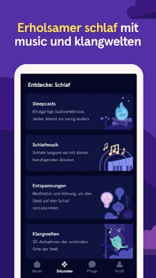 Erlebe erholsamere Nächte, indem du auf die speziellen Schlafmeditationen und beruhigenden Klanglandschaften von Headspace zurückgreifst. Ob bei Insomnie oder für eine tiefere Entspannung vor dem Schlafengehen – hier findest du die Unterstützung, die deinen Geist zur Ruhe bringt. Auch der tägliche Stress verliert seinen Schrecken: Mit achtsamen Atemübungen und gezielten Meditationen lernst du, Anspannung abzubauen, Ängsten entgegenzuwirken und auch in herausfordernden Momenten gelassen zu bleiben.