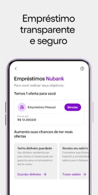 Doch Nubank bietet weit mehr als nur Grundfunktionen. Erledigen Sie schnelle und gebührenfreie Transaktionen mit Pix. Schützen Sie Ihre wichtigsten Güter und die Menschen, die Ihnen am Herzen liegen, mit maßgeschneiderten Versicherungslösungen. Benötigen Sie eine finanzielle Brücke? Unsere fairen und unkomplizierten Kreditangebote stehen Ihnen zur Seite. Selbst für die nächste Generation ist gesorgt: Nubank ermöglicht es auch Minderjährigen, ein eigenes Konto zu führen und den verantwortungsvollen Umgang mit Geld zu erlernen. Unser Engagement für Sie endet hier nicht – ein menschlicher Kundenservice ist 24 Stunden am Tag, an jedem Wochentag für Sie da. Und für Ihre Sicherheit bietet Nubank, sofern Sie es zulassen, eine intelligente Betrugserkennung, die Sie vor verdächtigen Telefonanrufen schützt. Die Nu Pagamentos S.A. steht für eine neue Ära des Bankings, die sich ganz nach Ihren Wünschen richtet.