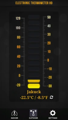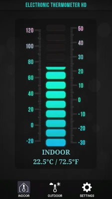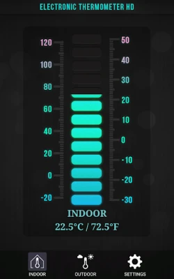 Erfahren Sie die Innen- und Außentemperatur auf einen Blick mit diesem digitalen Thermometer. Die App liefert genaue Messwerte in Grad Celsius und Fahrenheit für Ihre Umgebung.