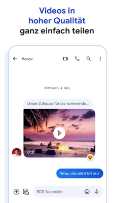 Google Messages ist Googles offizielle App für Chats, SMS und MMS. Entdecken Sie den Industriestandard RCS für erweiterte Kommunikation. Senden Sie hochauflösende Fotos, Videos und genießen Sie dynamische Gruppenchats. Einfache Kommunikation mit Milliarden Nutzern, auch iPhone-Anwendern.
