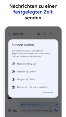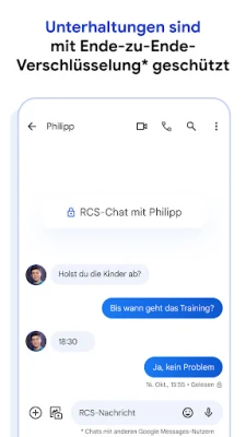 Ihre Unterhaltungen begleiten Sie, wohin Sie auch gehen. Beginnen Sie einen Chat bequem auf Ihrem Smartphone und setzen Sie ihn nahtlos auf Ihrem Tablet, Computer oder sogar Ihrer Smartwatch mit Wear OS fort. Google Messages bietet Ihnen ein kohärentes und vernetztes Kommunikationserlebnis über all Ihre Geräte hinweg. Entdecken Sie eine Welt voller erweiterter Funktionen, verstärkter Sicherheit und unbegrenzter Möglichkeiten, Ihre Gedanken und Gefühle auszudrücken. Beachten Sie, dass die Verfügbarkeit bestimmter Funktionen und von RCS regional, an den Mobilfunkanbieter sowie gegebenenfalls an einen Datentarif oder eine Beta-Registrierung gebunden sein kann.