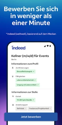 Mit Indeed wird Ihre Bewerbung zum Kinderspiel. Erstellen oder laden Sie Ihren Lebenslauf direkt auf der Plattform hoch, um sich optimal zu präsentieren und Arbeitgeber auf sich aufmerksam zu machen. Behalten Sie den Überblick über Ihre Bewerbungen dank Echtzeit-Benachrichtigungen, die Ihnen mitteilen, wann Ihre Unterlagen gesichtet oder beantwortet wurden. Darüber hinaus bietet Ihnen Indeed einen einzigartigen Einblick hinter die Kulissen: Profitieren Sie von Hunderten Millionen Unternehmensbewertungen und detaillierten Gehaltsangaben, die Ihnen helfen, fundierte Entscheidungen zu treffen, noch bevor Sie sich bewerben.