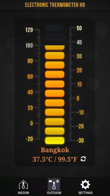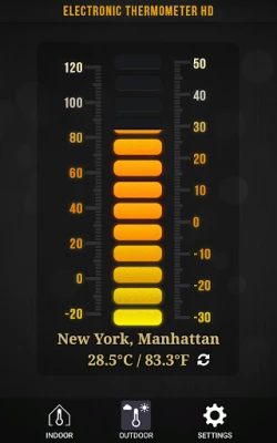 Erfahren Sie die Innen- und Außentemperatur auf einen Blick mit diesem digitalen Thermometer. Die App liefert genaue Messwerte in Grad Celsius und Fahrenheit für Ihre Umgebung.